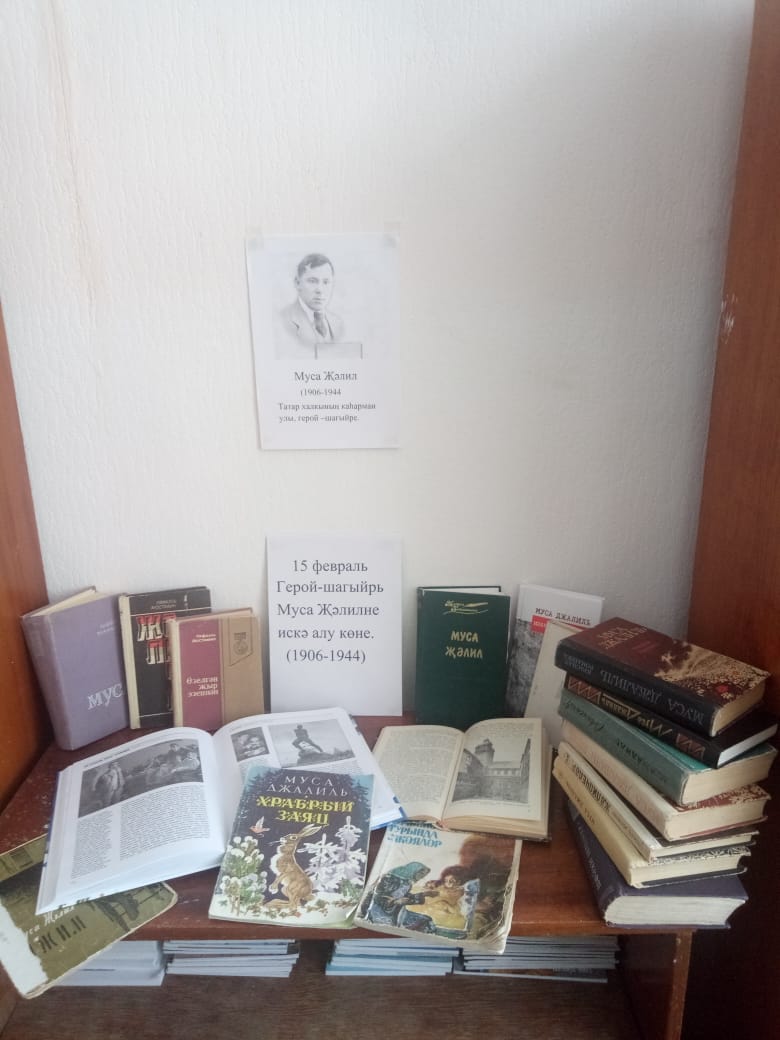 Ел саен 15 февральдә татар халкының бөек каһарман шагыйре Муса Җәлилнең (1906-1944) туган көне билгеләп үтелә.Шул уңайдан мәктәп китапханәсендә китап күргәзмәсе оештырылды. Шагыйрьнең тормыш юлы , иҗаты белән таныштырылды.
