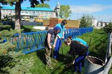 7.05 вся школа вышла на территорию школы. Классные руководители с учениками классов работали на закрепленных цветниках, участках. Ученики 9 классов в честь 71 годовщины ВОВ посадили саженцы сосны в количестве 71 штук.