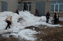 Сегодня силами коллектива школы провели экологический субботник. Очистили территорию школы от снега и мусора, разбросали снег вокруг забора со стороны улицы. Территория школы стала чистой. Перед школой на клумбах скоро зацветут тюльпаны.