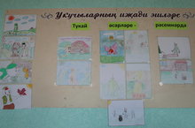 В рамках мероприятий, приуроченных к Году родных языков и народного единства и посвященного 135 – летию со Дня рождения Г. Тукая , был проведен конкурс рисунков среди учащихся 5-8 классов. Цель конкурса: вызвать интерес к творчеству поэта, дать обзор его произведений, привить любовь к личности, литературному наследию Г. Тукая на основе его стихов, сказок. Ребята в своих рисунках изобразили своих любимых персонажей из произведений поэта.Выставка получилась содержательной и яркой и привлекала внимание ребят ещё долгое время.