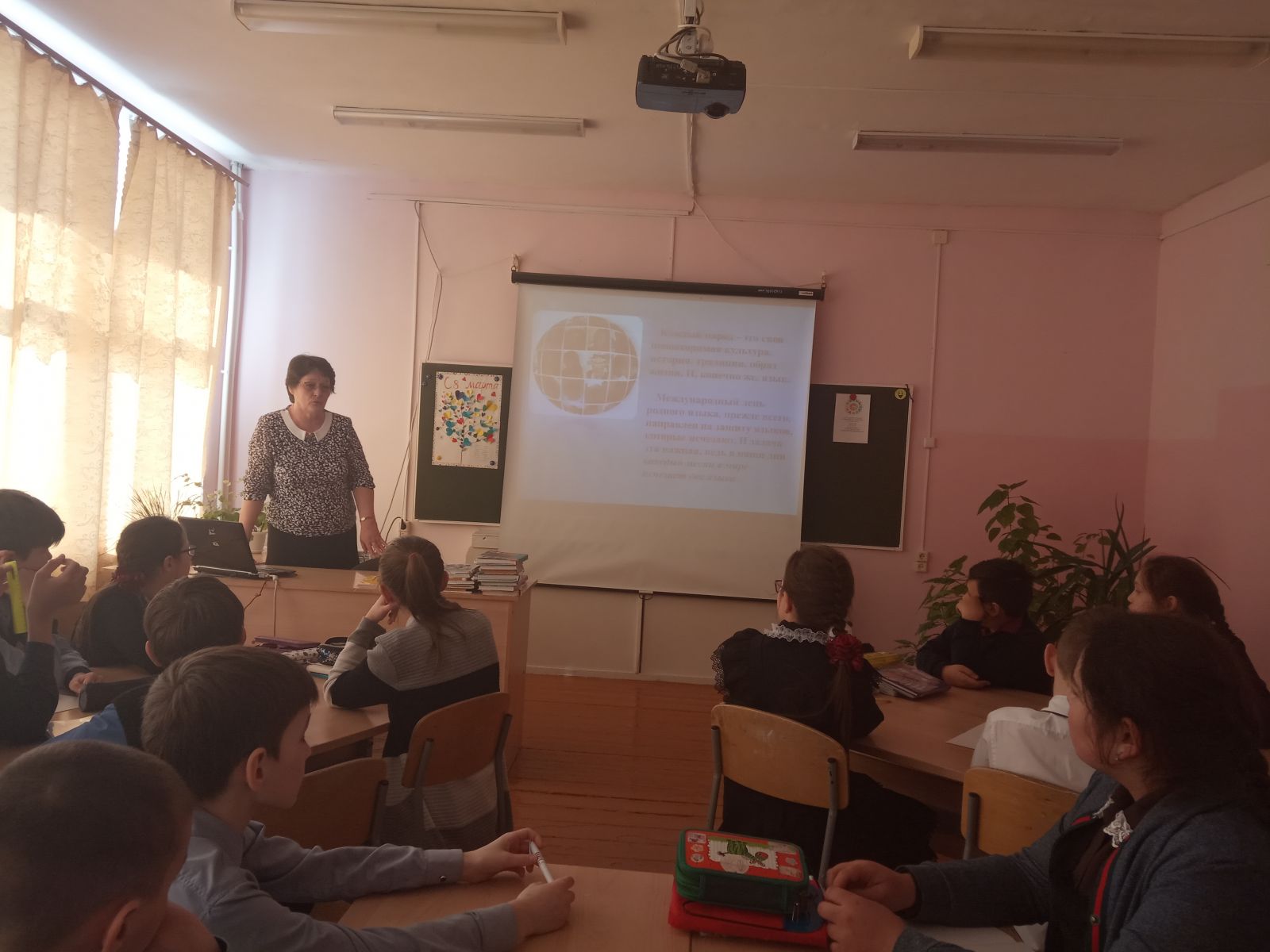 Бүген безнең мәктәпнең 5-7нче сыйныф укучылары арасында «Туган телем, рус телен яратам...»дип исемләнгән ачык уку-танып-белү дәресе узды.