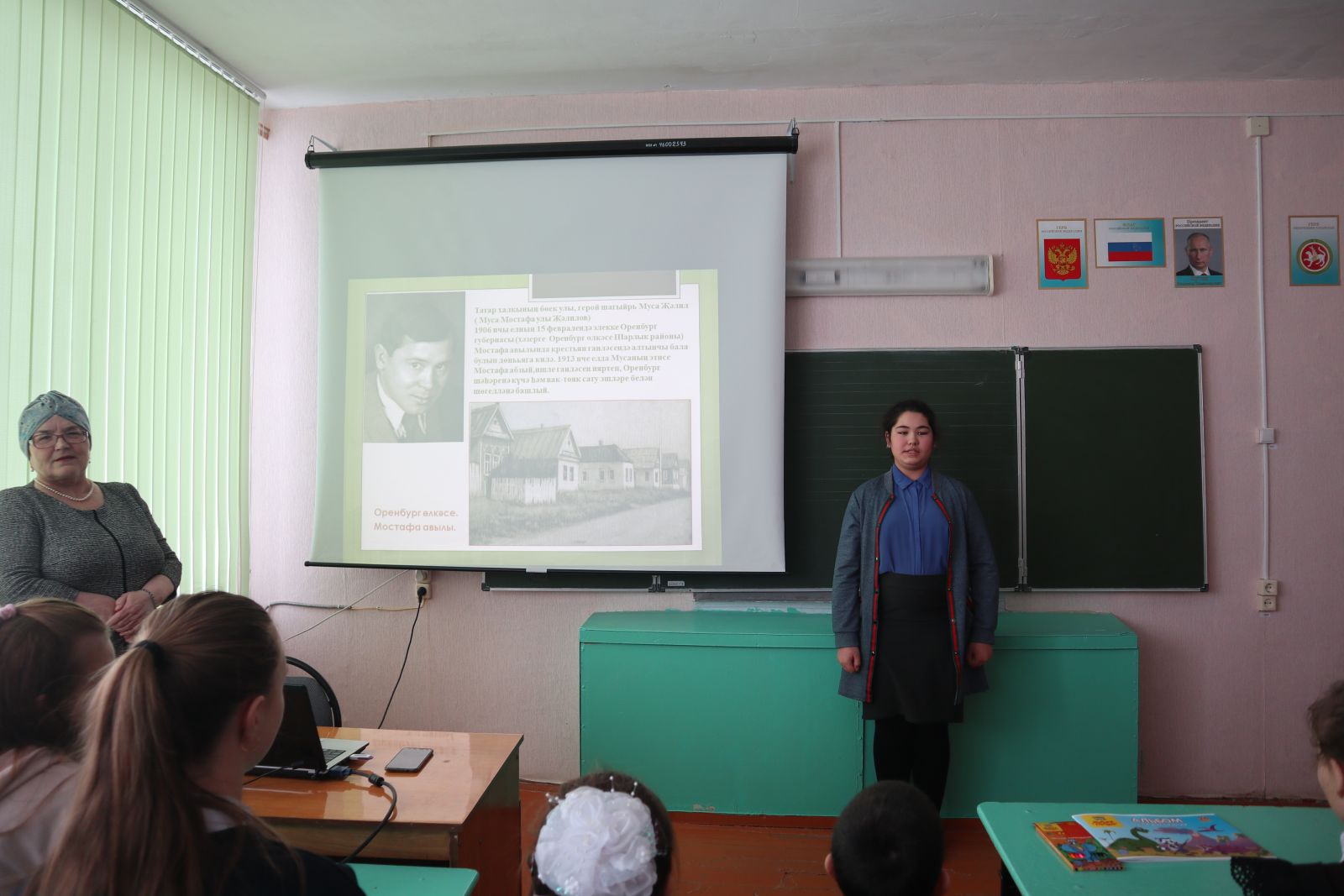Быел герой-шагыйрь Муса Җәлилнең тууына 115 ел тулу көннәре татарлар яшәгән барлык төбәкләрдә, шул исәптән безнең мәктәптә дә зурлап билгеләп үтелде. Муса Җәлилнең тормыш юлы һәм иҗаты турында презентацияләр төзү һәм аларны карау, Муса Җәлил шигырьләрен сәнгатьле сөйләү бәйгесендә укучылар бик теләп катнашты. Башлангыч сыйныфлардан алып зур сыйныфларга кадәр укучылар Җәлил әсәрләрен яхшы белүләрен күрсәттеләр. Шулай ук Муса Җәлил музеена читтән торып оештырылган видеоэкскурсия дә укучыларда кызыксыну уятты. Балалар музей экспонатлары, Моабит дәфтәрләренең тарихы белән таныштылар.