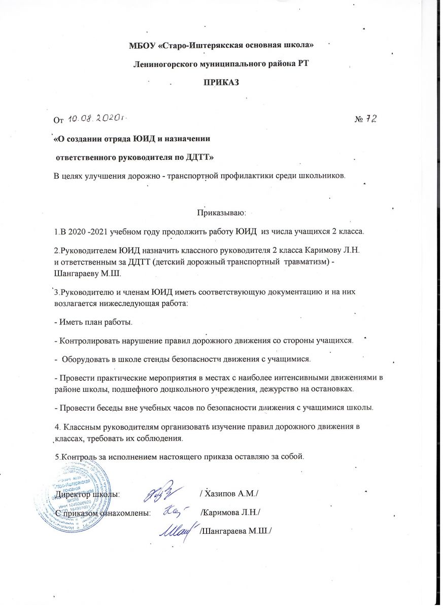 Приказ о создании отряда ЮИД