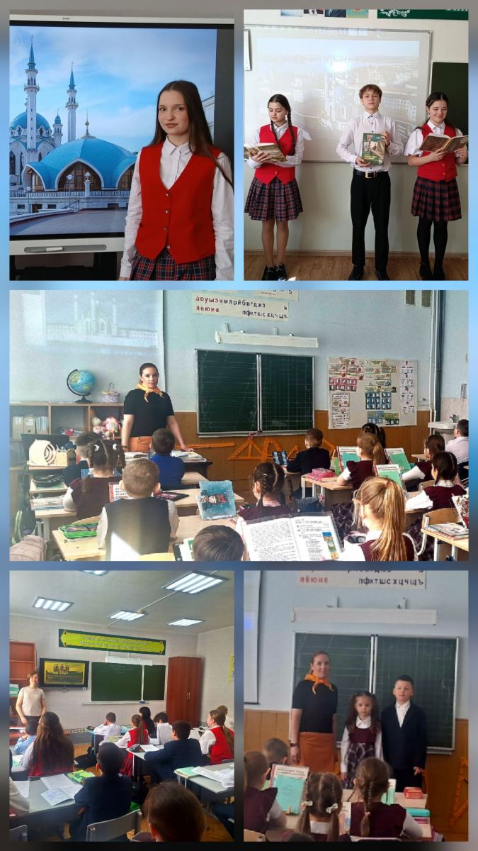 «Казан — ислам дөньясының мәдәни башкаласы 2026» Казан рәсми рәвештә мәгариф, фән һәм мәдәният мәсьәләләре буенча Ислам дөньясы оешмасы тарафыннан бирелгән ислам дөньясының мәдәни башкаласы статусын гамәлгә ашыра. Бердәм дәрес Казан шәһәренең Меңьеллык мирасына, мәдәниятләрнең тыныч яшәвенең уникаль моделенә һәм милләт-ара диалог традицияләренә багышлана, алар Татарстан һәм Россиянең визит карточкасына әверелде. Максатлары: - Укучыларны Казанның ислам дөньясындагы тарихи-мәдәни әһәмияте белән таныштыру - Рухи мираска хөрмәт, толерантлык һәм гражданлык үзенчәлеген формалаштыру – Дин ара татулыкны ныгытуда мәгариф, фән һәм мәдәниятнең ролен күрсәтергә. Башлангыч сыйныф укучылары Казан шәһәренә виртуаль экскурсия ясадылар. Кремльне, Татарстан Республикасының Милли музеен, Бауман урамын һәм башка бик матур урыннарны карадылар (тәрбия эшләре буенча директор киңәшчесе А. В. Гаврилова һәм башлангыч сыйныфлар укытучылары). 5-11 сыйныф укучылары «Казан - ислам дөньясының мәдәни башкаласы» сыйныф сәгатенә кушылдылар.