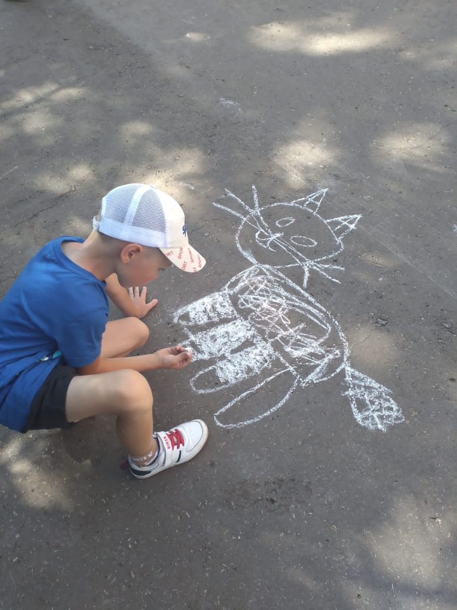 Ребята 3 отряда провели викторину «Удивительный мир животных».Затем нарисовали на асфальте своих любимых животных.