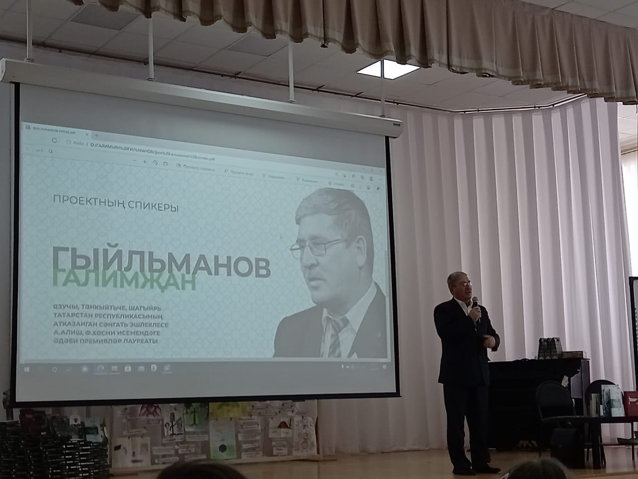 1 нче апрель көнне күренекле татар язучысы, шагыйре, драматургы, әдәбият белгече Галимҗан Гыйлманов белән очрашу булды. Очрашуда автор үзенең балачак хатирәләре белән уртаклашты, әдәби карьерасының беренче адымнарының серен ачты, әдәбиятка булган үз карашлары белән уртаклашты. Ә укучылар, үз чиратында, аның шигырьләрен һәм тәрҗемәләрен укып киттеләр. Чын язучы белән очрашу укучылар өчен чын бәйрәм булды.