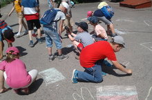 Накануне Дня России все отряды лагеря "Солнышко" побывали в детской библиотеке. Интересная и познавательная программа, подготовленная работниками библиотеки, прошла на одном дыхании. Затем ребята с удовольствием приняли участие в викторине и конкурсе рисунков на асфальте.