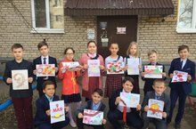 «Спасибо деду за Победу!» - так назвали акцию учащиеся 4 класса и расклеили рисунки на подъездах микрорайона.