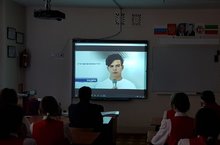 Занятие началось с просмотра интервью Константина Хабенского, в котором он говорил о волонтёрской деятельности и о работе своего фонда помощи детям с заболеваниями головного и спинного мозга.
