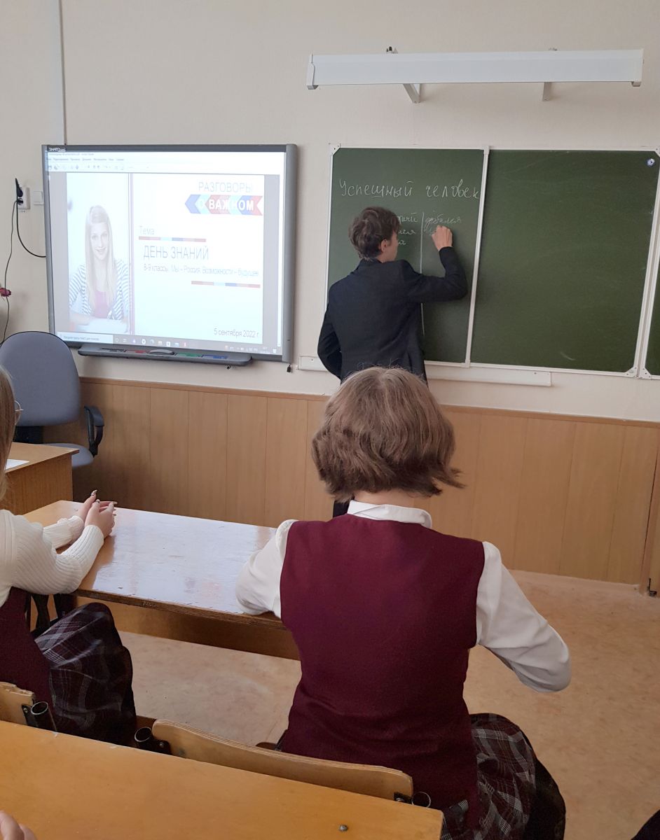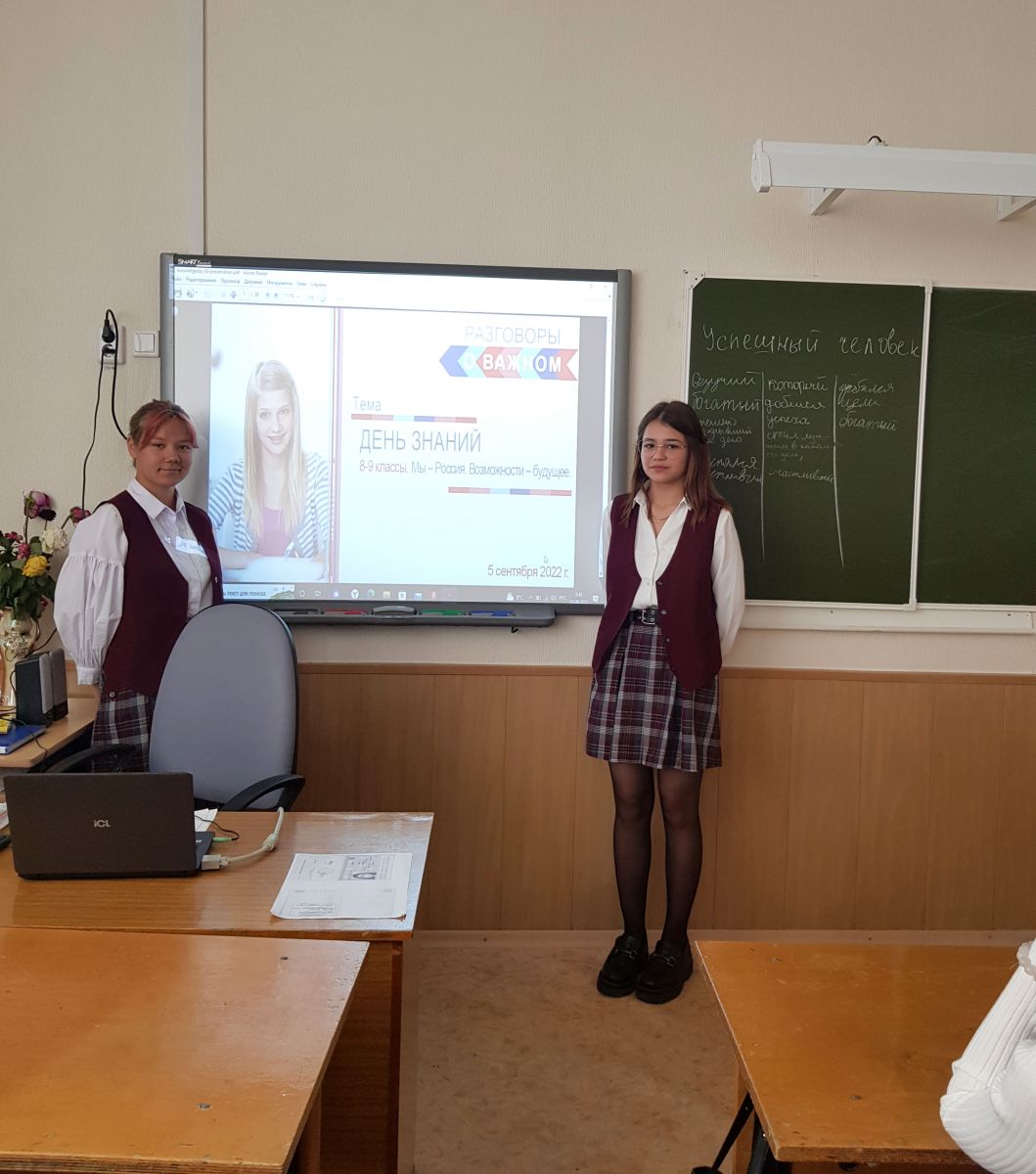 5.09.2022 в 9а классе прошло первое внеурочно занятие из цикла "Разговор о важном" по теме "Мы - Россия. Возможности - будущее". На данном мероприятии ученики поразмышляли о будущем, о возможностях, которые сегодня есть у каждого, чтобы стать успешнее. Ребята познакомились с проектами платформы «Россия – страна возможностей», а также обсудили подробно одно из направлений "Всероссийская олимпиада школьников", куда учащимся уже предстоит окунуться в ближайшее время.