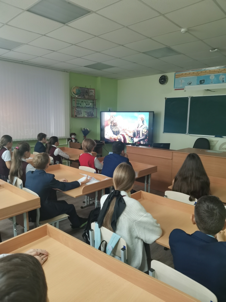 В 7в прошёл первый урок разговоров о важном, рябята познакомились с символикой Российской Федерации.