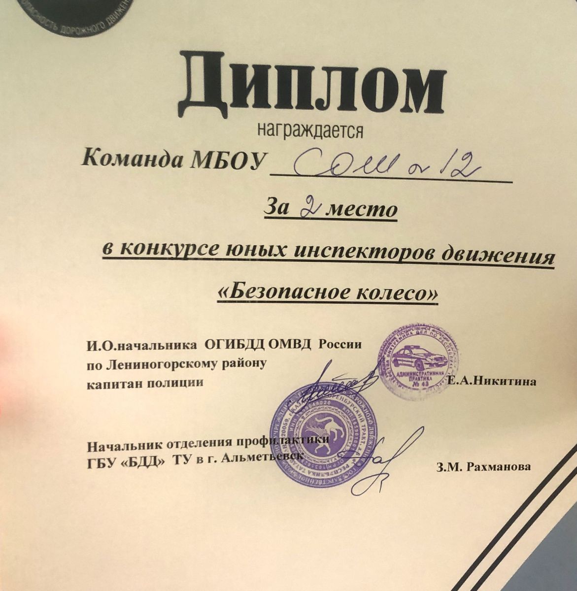 21 и 22 апреля прошли два тура муниципального этапа Республиканского конкурса «Безопасное колесо».Отряд ЮИД лицея (Руководитель Куку Н.А.) в составе: Хазов Алексей (5 класс),Фаррахов Али (5 класс),Демидова Анна (5 класс) и Волбенкова Кира (5 класс) занял почетное 2 место, уступив лишь ребятам из СОШ 2.Ребята показали высокий уровень знаний в области ПДД и медицины, продемонстрировали свою ловкость и мастерство в вождении велосипедов,а также проявили свои творческие и артистические способности.За проявленные упорство, целеустремленность, волю к победе ребята были награждены памятными подарками в виде смарт-часов, а также велосипедом, который станет помощником для будущей смены юных инспекторов движения лицея.