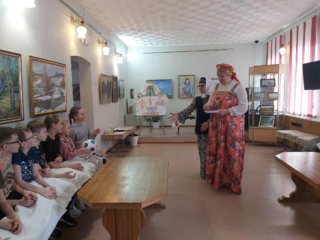 Ученики 4Б класса (учитель Ермолаева Н.В.) в первый день каникул побывали в гостях в Краеведческом музее. Не простое дело - ходить в гости, а целая наука. Этой важной науке обучали ребят на занятии "Традиции народного гостеприимства". Мы узнали о культуре гостевания коренных народов Лениногорского района - русских, татар, чувашей, мордвы. Хозяйка Музейбика рассказала о том, как встречали гостей: что приносили в дом гости, чем угощали хозяева. Мы с удовольствием сыграли в народные игры, узнали секреты чаепития разных народов, познакомились с пословицами , потешками и песнями.
