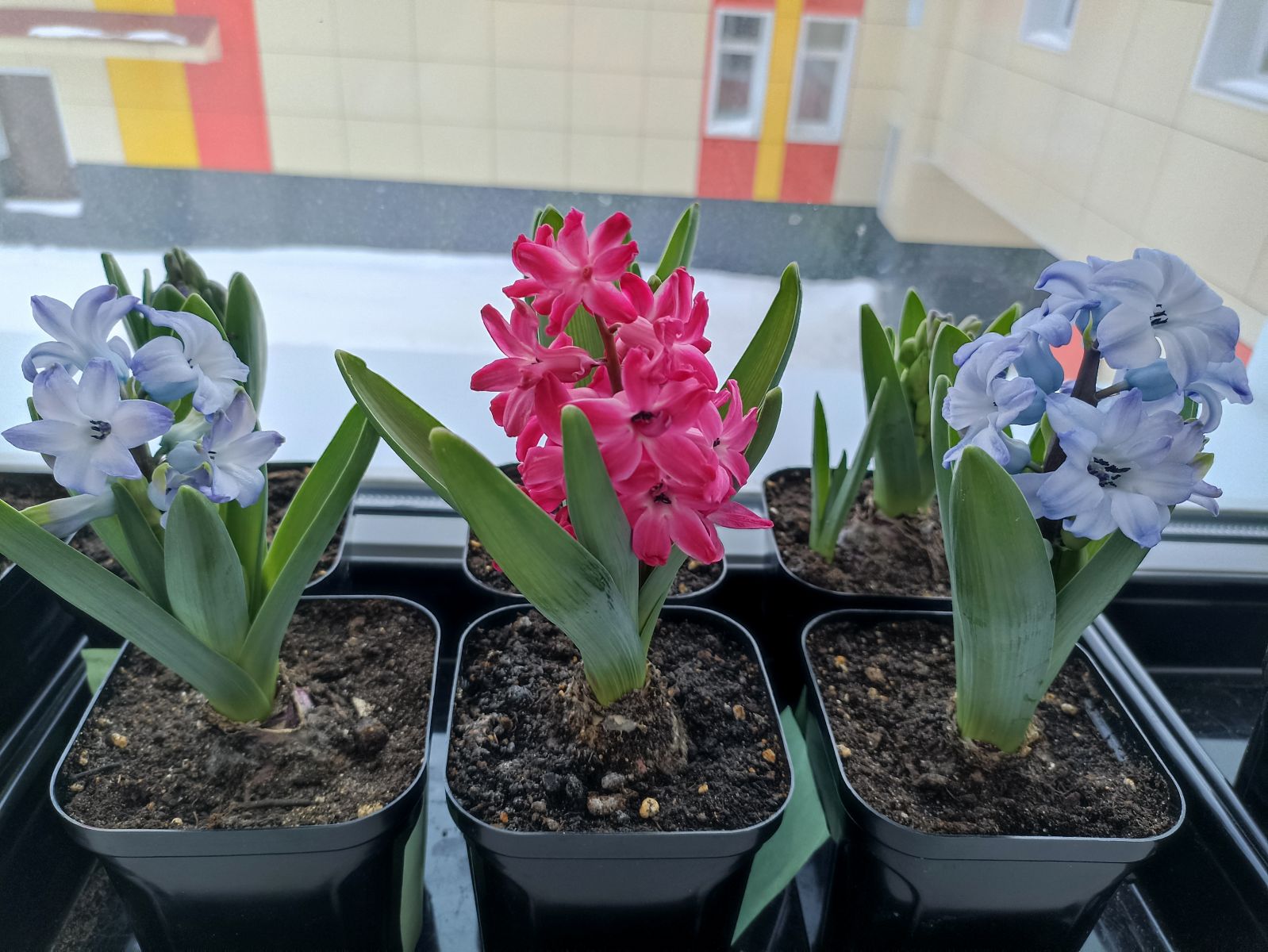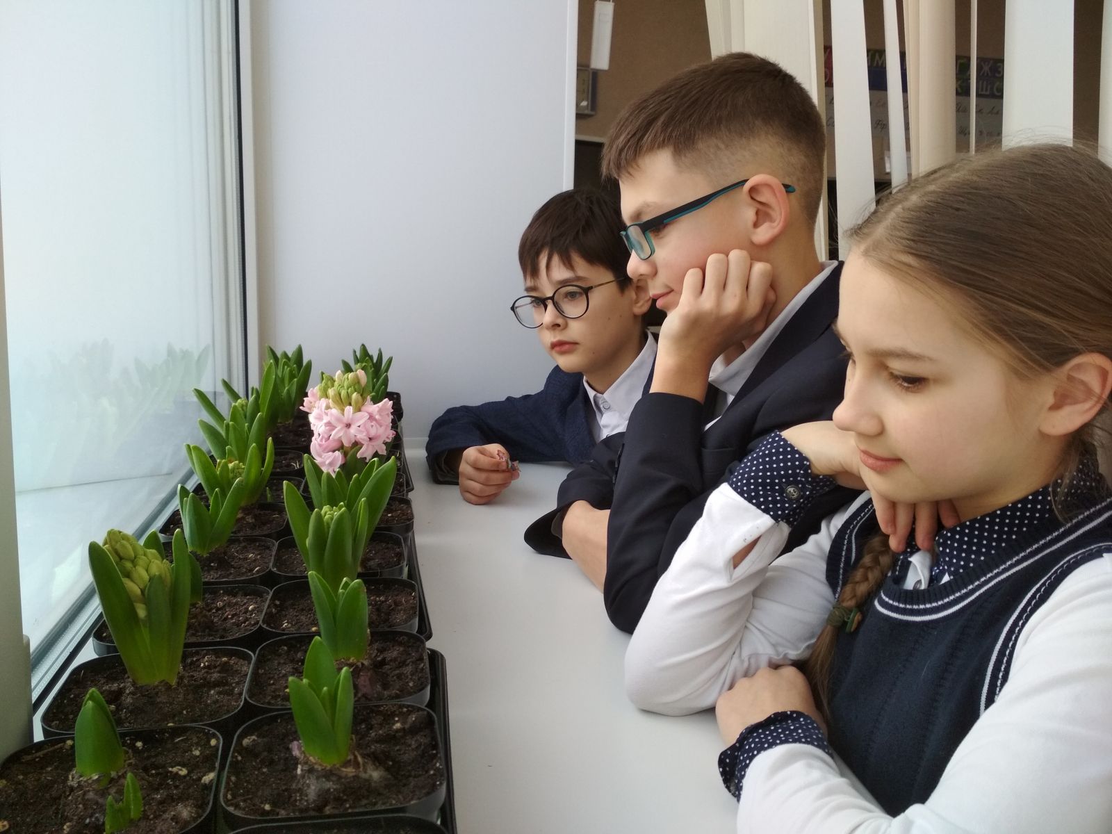 В преддверии 8 Марта ученики 4 Б класса (учитель Ермолаева Н.В.) завершили работу над проектом "Цветы для любимой мамы". В этом году мы решили вырастить гиацинты к весеннему празднику, порадовать и удивить мам.