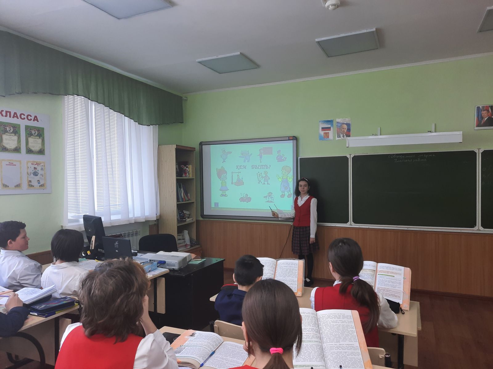 В 11 А классе 17 марта прошел классный час « Моя будущая профессия»,ребята сами познакомили своих одноклассников со своей будущей профессией,рассказали о своих мечтах и о том кем они хотят работать .