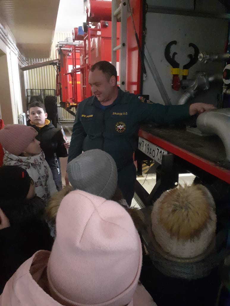 Для детей пожарный – человек героический, и в былые годы, и сегодня, спасающий из огня людей, встающий на пути у разрушения. Уважение к пожарным, интерес к их занятиям может стать стимулом для развития серьезного отношения к собственному поведению, препятствием для бездумных игр с огнем. Но совсем по-другому усваиваются правила пожарной безопасности детьми, когда об этом рассказывает пожарный, поэтому 18 марта учащиеся 1В класса посетили пожарную часть.