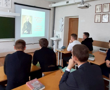 Сегодня в 11 классах (учитель Салахова И.В.) прошло внеклассное мероприятие, посвященное 200-летию со дня рождения великого русского писателя Ф.М. Достоевского-мыслителя, философа, публициста. Тема мероприятия «Великое пятикнижие»– такое название дано неофициальному циклу из пяти самых масштабных романов русского классика Федора Михайловича Достоевского. Они были написаны один за другим и как бы представляют из себя романный марафон гениального прозаика. Цель мероприятий – через осмысление творческого наследия Ф. М. Достоевского, в чьих произведениях затрагиваются проблемы трудного детства, взросления человека, добра, зла, милосердия, сострадания, приобщить выпускников к духовным ценностям, поставить вопросы нравственного ориентира в жизни