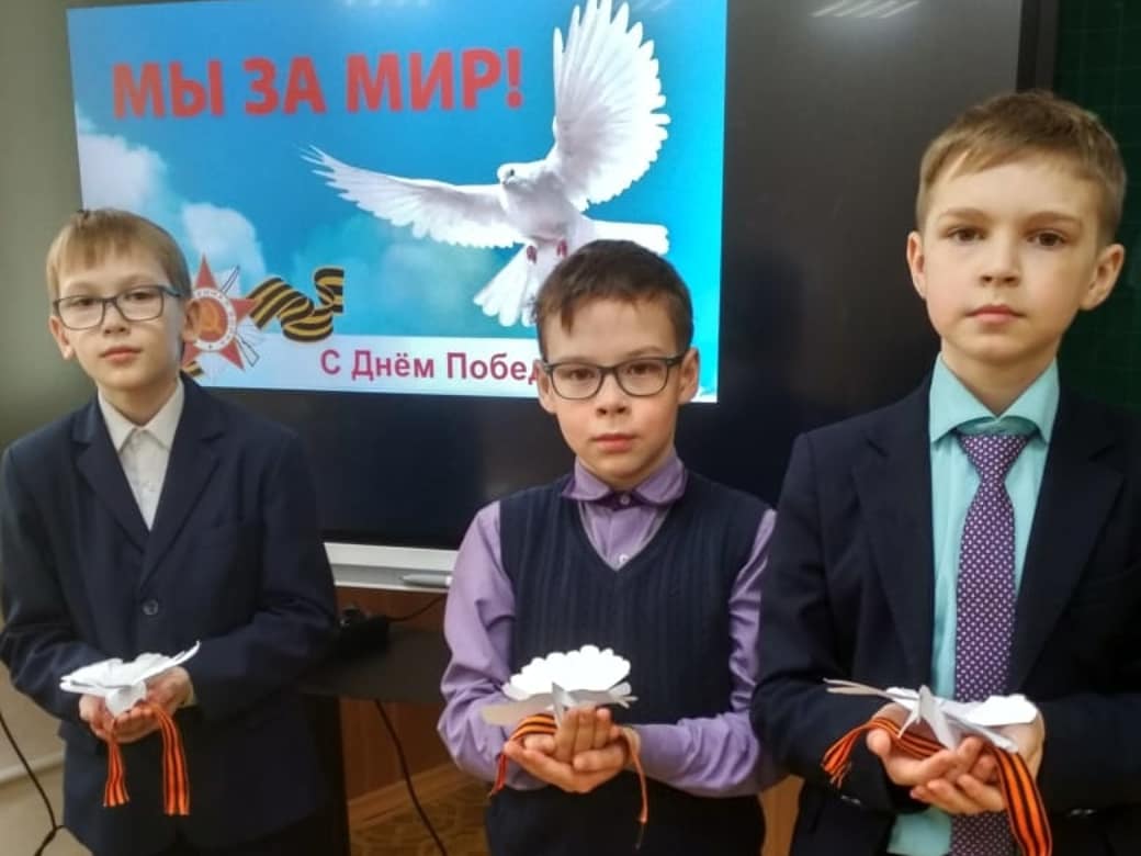 Накануне майских праздников ученики 3 класса провели акцию "Голубь мира". Ребята сделали белых голубей, чтобы подарить их 9 Мая ветеранам войны. Эта акция стала нашей благодарностью героям войны, подарившим нам счастливую мирную жизнь!