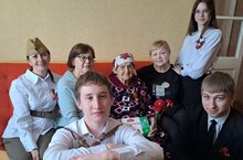 Сегодня в преддверии Дня Победы советник директора по воспитанию и взаимодействию с детскими общественными объединениями Зиля Мударисова и председатель профсоюзной организации Наталья Газиева вместе с активом студенческого совета посетили 98-летнюю труженицу тыла, ветерана труда Домну Ивановну Тимошкину.