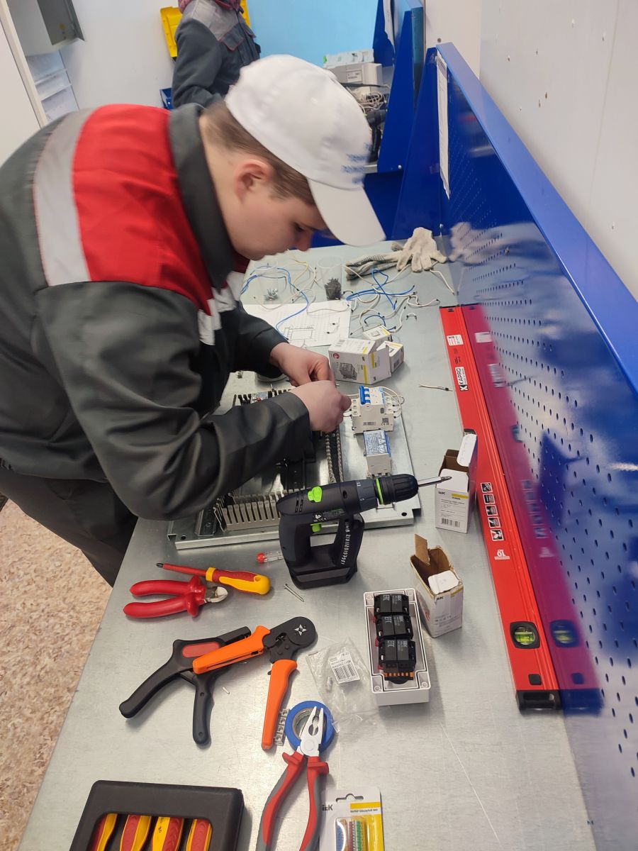 30 января 2023 года в электромонтажной мастерской колледжа состоялся конкурс профессионального мастерства по компетенции «Лучший по профессии» «Электромонтер». Мастер производственного обучения Савенкова Л.Т. подготовила необходимые материалы, оборудование и документацию для проведения конкурса.