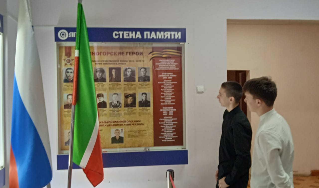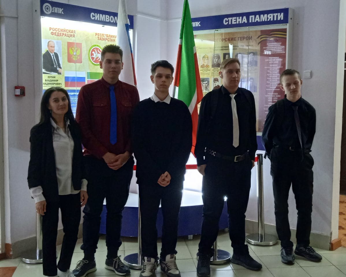 Куратор группы Зиля Маратовна Мударисова рассказала историю 12 героев Лениногорского района. Было невероятно вдохновляюще слушать истории о тех, кто не побоялся стать защитниками своей Родины и готовыми пожертвовать собой ради других. Студенты побывали в патриотическом уголке, где расположены портреты героев Лениногорской земли.