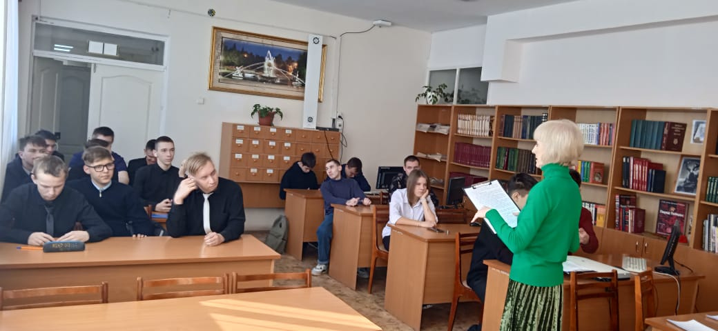 Опубликовано: 21.02.2024Сегодня в рамках патриотического воспитания в читальном зале библиотеки для студентов ТОР.22 и для студентов, находящихся в группе риска прошел познавательный классный час на тему "Есть ценности, которым нет цены".