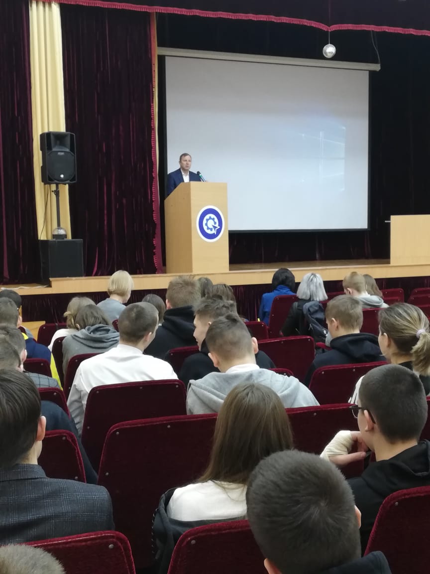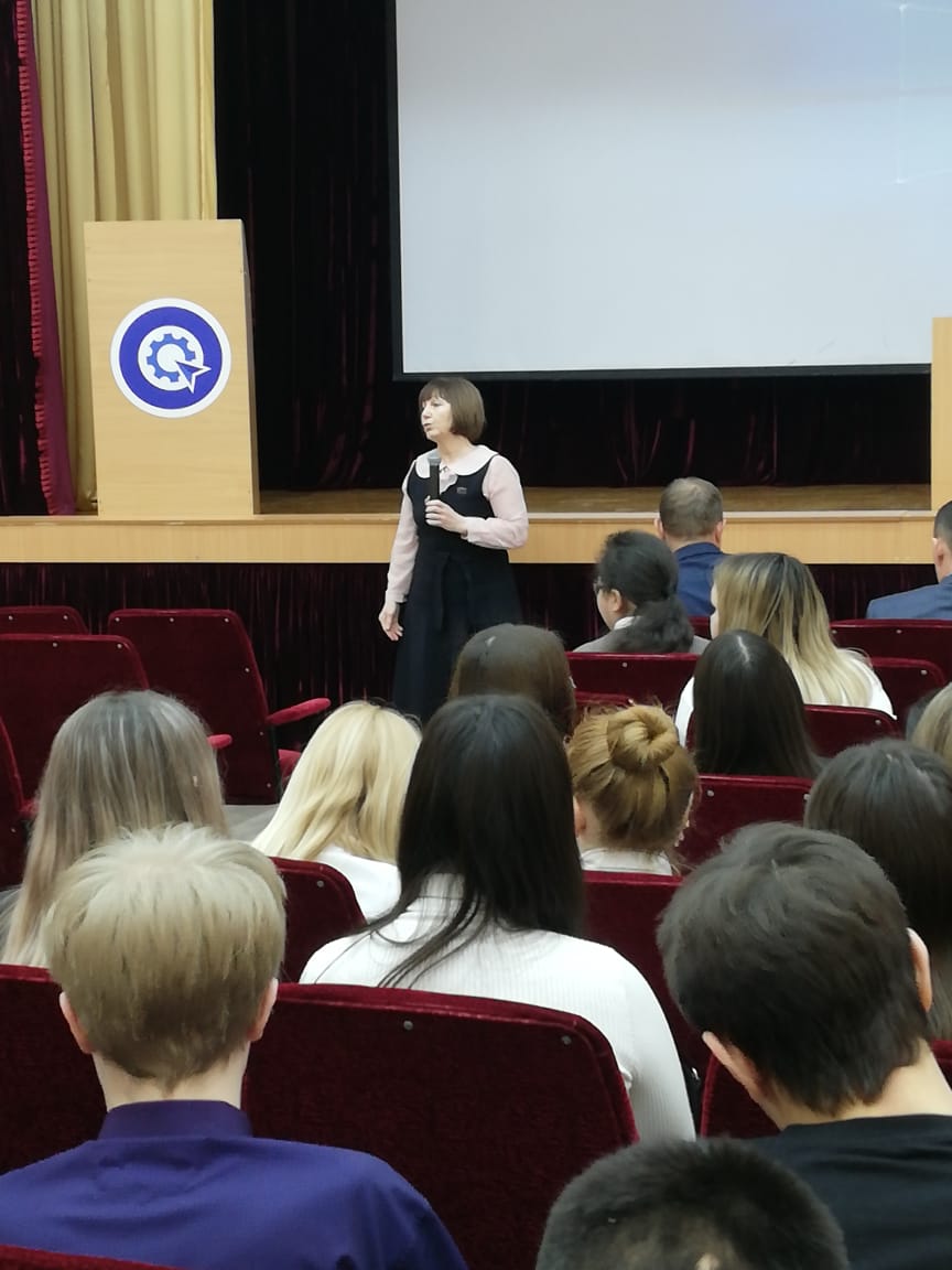 Опубликовано: 22.02.202421 февраля в актовом зале ГАПОУ "Лениногорский политехнический колледж" состоялся классный час для обучающихся групп 3 и 4 курсов. На мероприятие были приглашены заместители главы муниципального образования "Лениногорский муниципальный район" Рафикова Г. М. и Тимаков С. В.