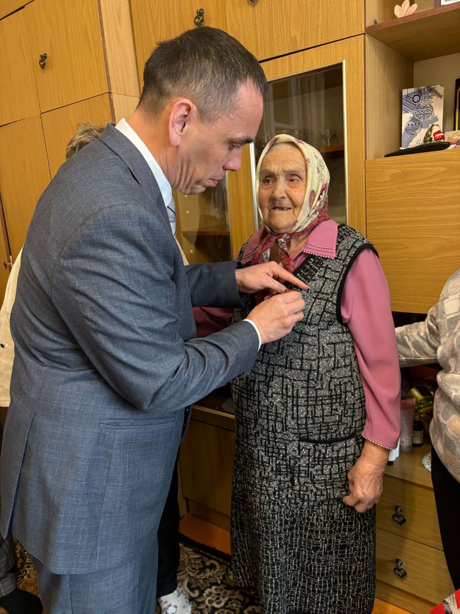 "Современное поколение равняется на вас, учится самоотверженности, ответственности и патриотизму," - сказал Рустем Рафаэлович, обращаясь к ветерану, и поблагодарив её за труд, пожелал здоровья и благополучия.