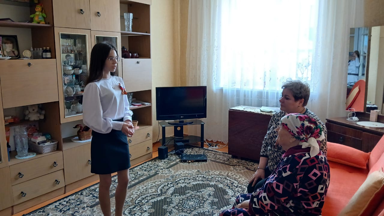 Опубликовано: 05.05.2025Сегодня в преддверии Дня Победы советник директора по воспитанию и взаимодействию с детскими общественными объединениями Зиля Мударисова и председатель профсоюзной организации Наталья Газиева вместе с активом студенческого совета посетили 98-летнюю труженицу тыла, ветерана труда Домну Ивановну Тимошкину.