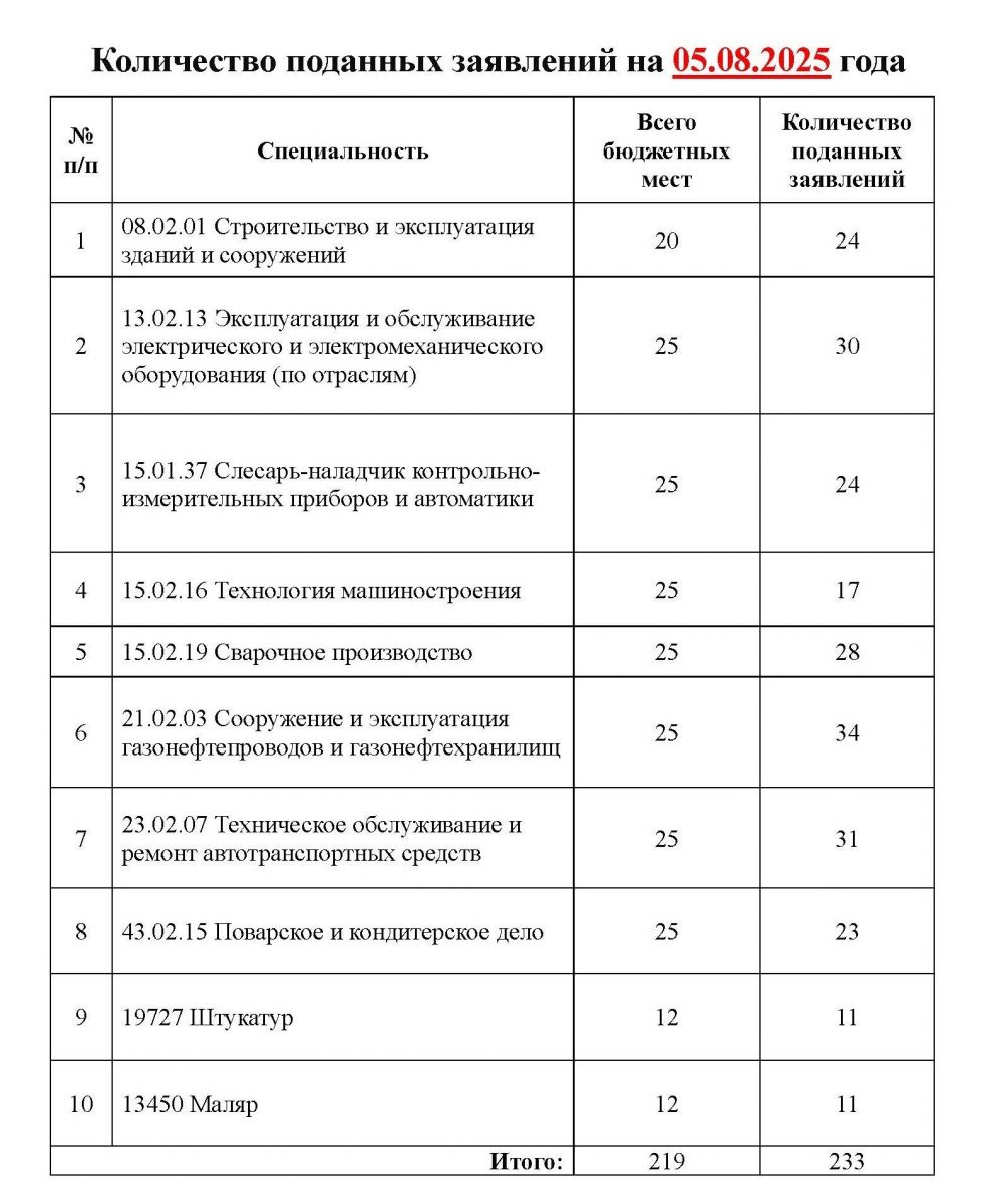 Опубликовано: 05.08.2025Количество поданных заявлений 05.08.2025
