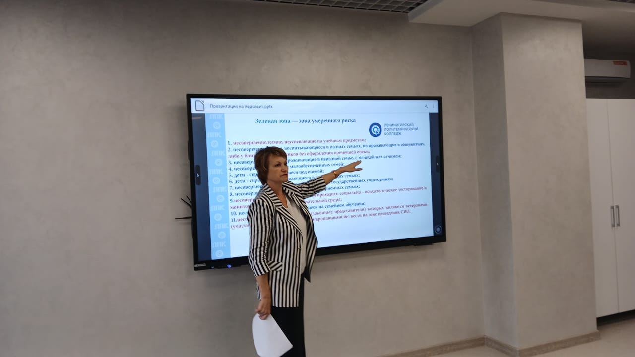 Опубликовано: 09.10.2025Заместитель директора по воспитательной работе Ольга Петровна Фролова провела важное рабочее совещание с кураторами групп, где были обсуждены ключевые вопросы ведения профилактической работы с несовершеннолетними, состоящими на различных видах учёта.