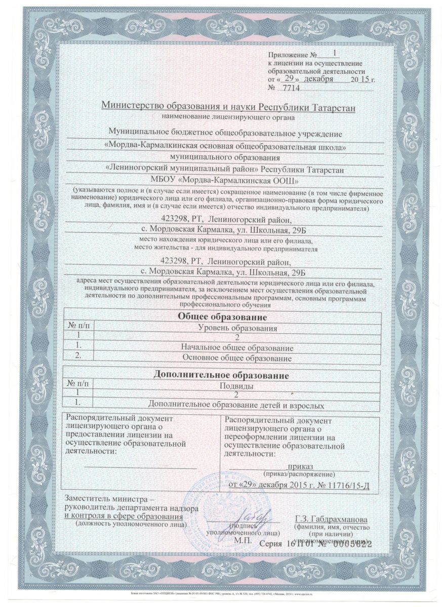 МБОУ «Мордва-Кармалкинская основная общеобразовательная школа» Лениногорского муниципального района РТ (реорганизация)