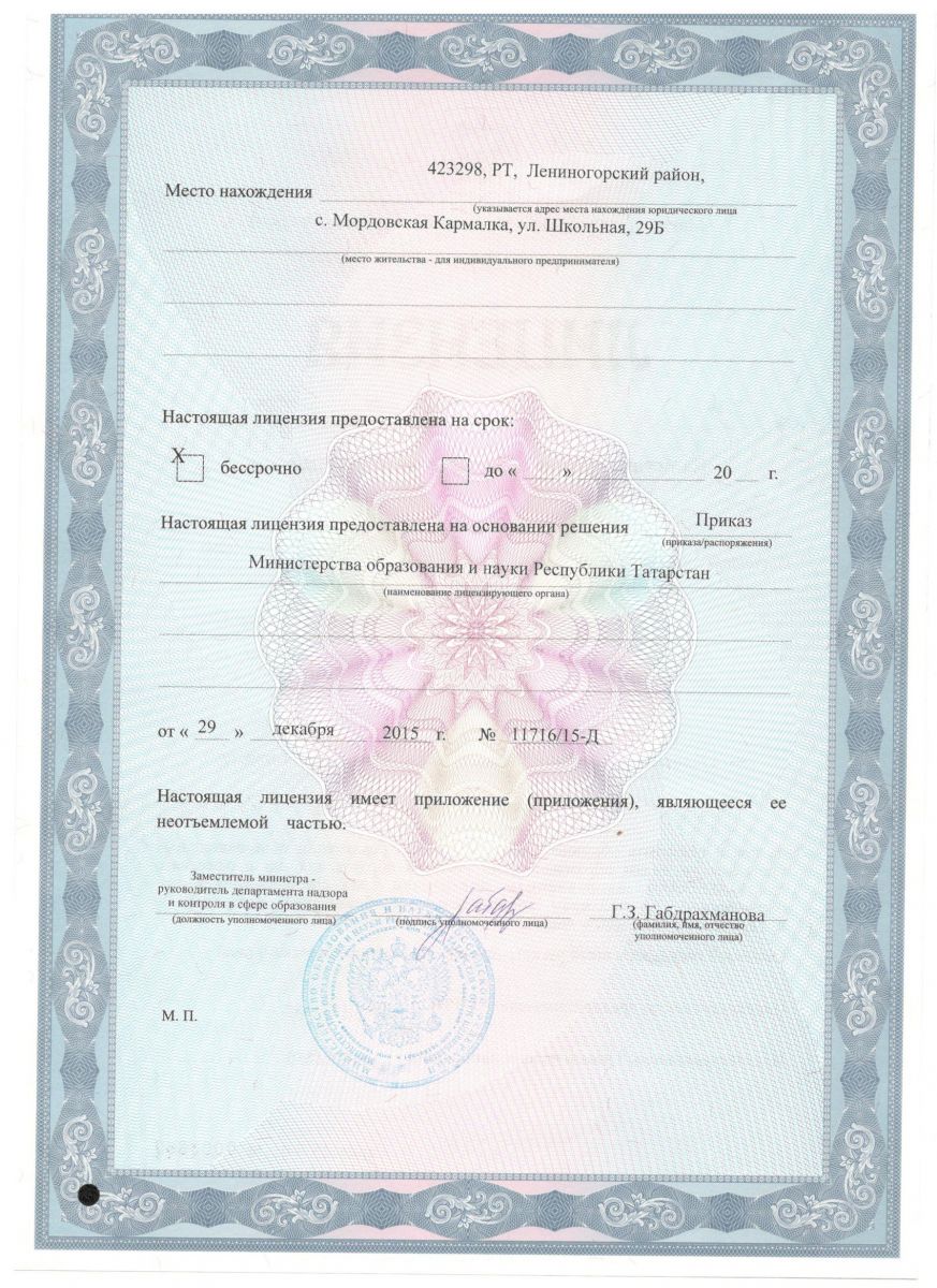 Лицензия и приложение на осуществление образовательной деятельности