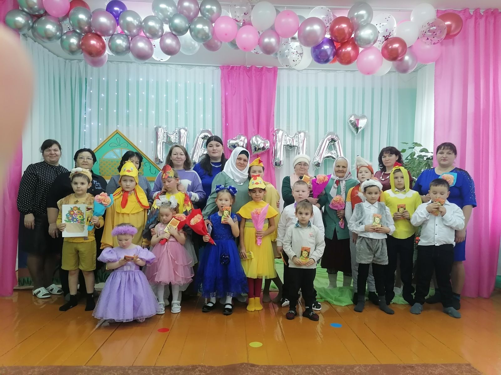 Бу кон балалар колуеннэн, матур кунелле жырлардан, дэртле биюлэрдэн шау-гор килеп торса, балалар бакчасына жыелган энилэрнен, чакырылган кунакларнын елмаюыннан бар тирэ-юнь ягымлы жылы мохитка эверелде.Бэйрэмнен 1нче булегендэ балалар бакчасы тэрбиялэнучелэре энилэренэ узлэренен хонэрлэрен курсэтте,э 2нче олештэ мэктэп укучылары бик мэгьнэле "Мактанчык этэч" экиятен сэхнэлэштереп курсэттелэр. Балалар уз куллары белэн ясаган чэчэклэрне энилэренэ булэк иттелэр.Мондый зур бэйрэм бэлешсез, чэйсез буламыни ул! Бик матур бэйрэмнэн кунеллэр булып ойлэргэ таралыштык.