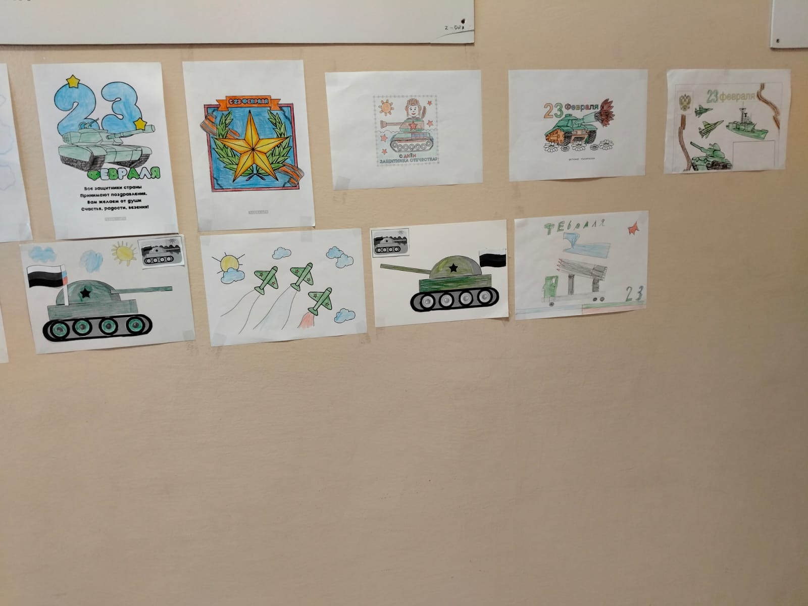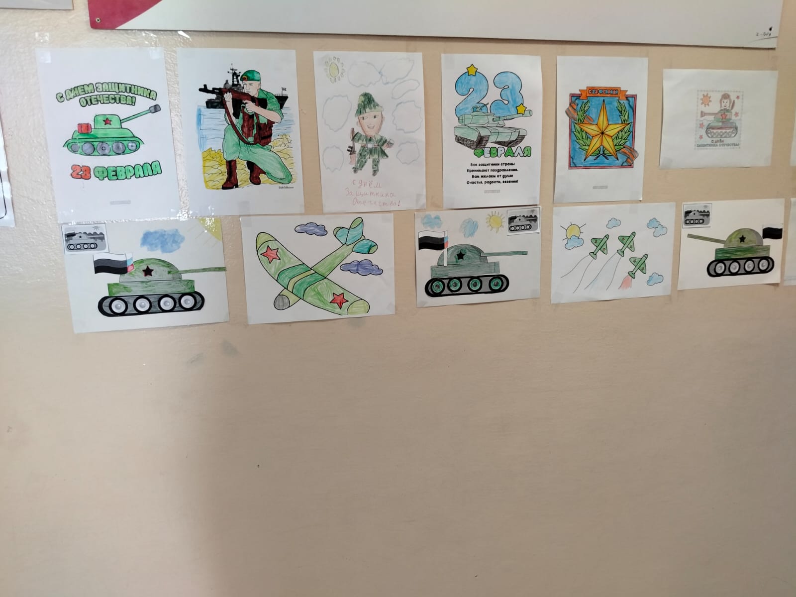 В процессе подготовки к проведению праздника 23 февраля, учащиеся нашей школы провели ряд мероприятий для проведения данного праздника. Одним из пунктов проведения мероприятия был художественный конкурс-выставка детских рисунков и творчеких работ. Ребята справились с данным заданием хорошо. Старались все .