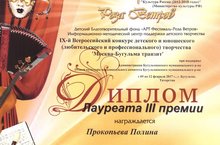 IX Всероссийский конкурс (любительского и профессионального) детского и юношеского творчества “Москва-Бугульма транзит” (Роза ветров 2017) 14.02.2017