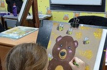 В объединении «Дети искусства» кипит творческая работа! На занятии, учащиеся осваивали технику живописи гуашью. Темой для вдохновения стал сюжет из мира дикой природы — косолапый медведь и трудолюбивые пчёлы.