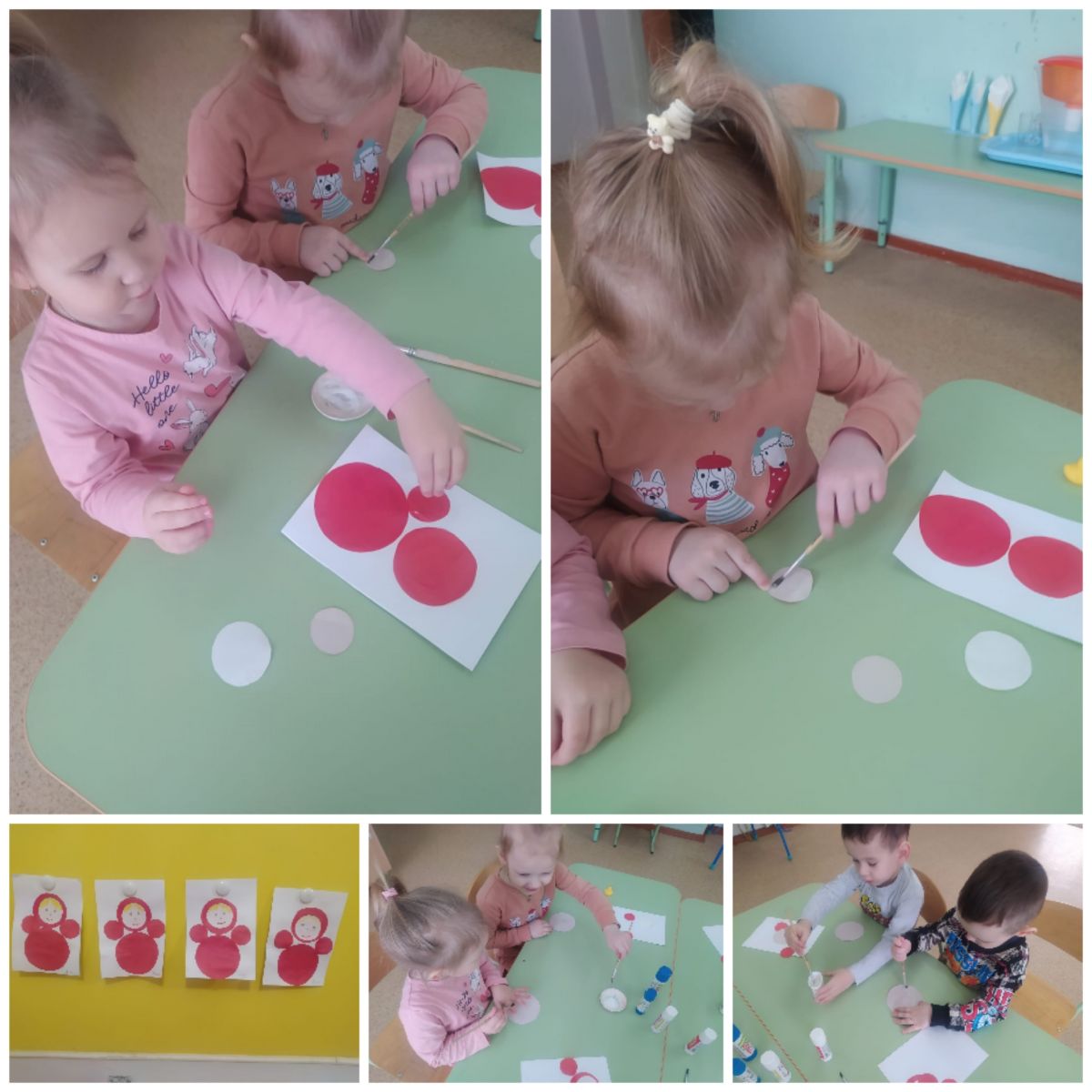 Цель занятия : познакомить детей с матрешкой - символом русской культуры; учить детей аккуратно наклеивать предметы круглой формы на основу; при помощи карандашей, фломастеров дорисовывать детали.