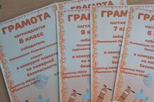 1 место: Шафигуллин К.(5 кл.), Ризванова Г.(5кл.), Брагин Е.(1кл.)