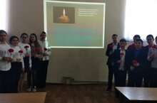 22 апреля в рамках проведения мероприятий - Уроки Мужества - посвящённых 80летию Победы в ВОВ для учащихся школы проведена беседа с просмотром фильма "Красные ленты", посвящённого Защитникам Крыма.
