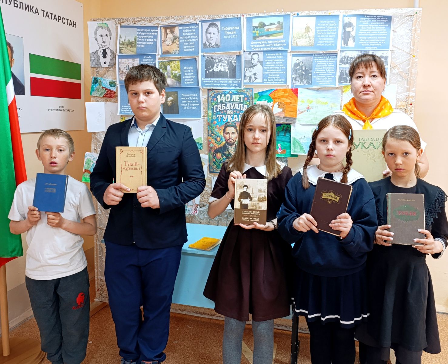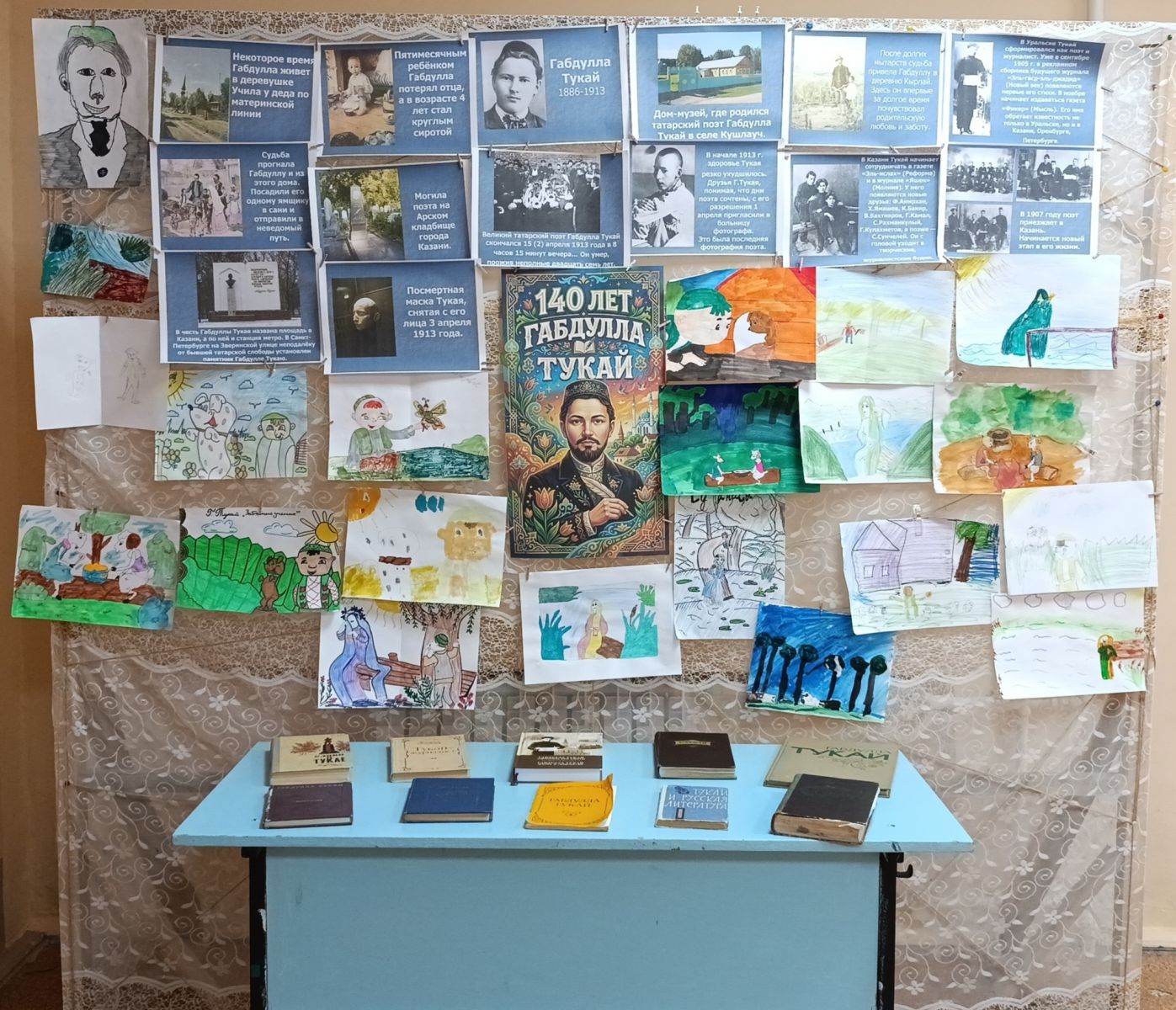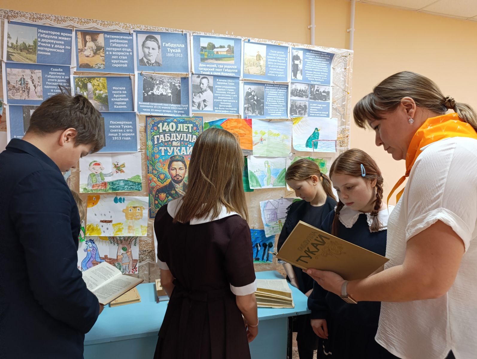 В честь Дня родного языка советник директора по воспитанию совместно с детьми оформила тематическую выставку, посвящённую творчеству великого татарского поэта Габдуллы Тукая.