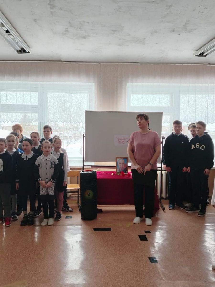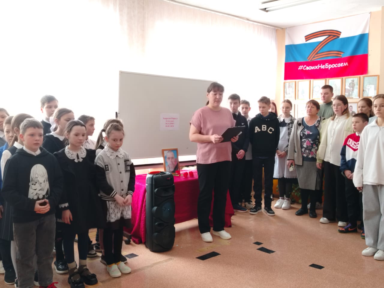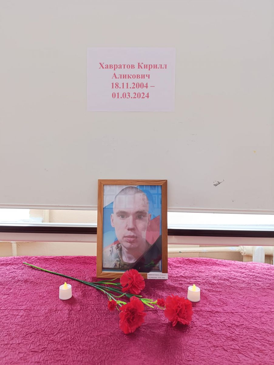 Сегодня в нашей школе прошла общешкольная линейка, посвященная памяти погибшего 1 марта 2024 года в ходе СВО выпускника школы Хавратова Кирилла Аликовича.