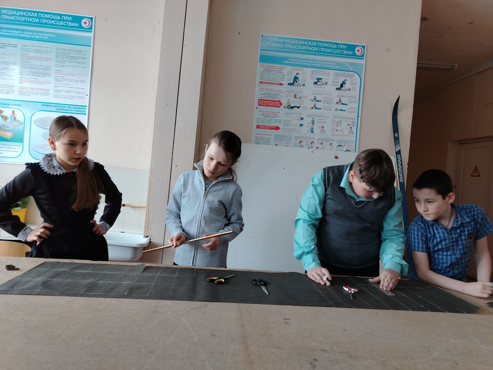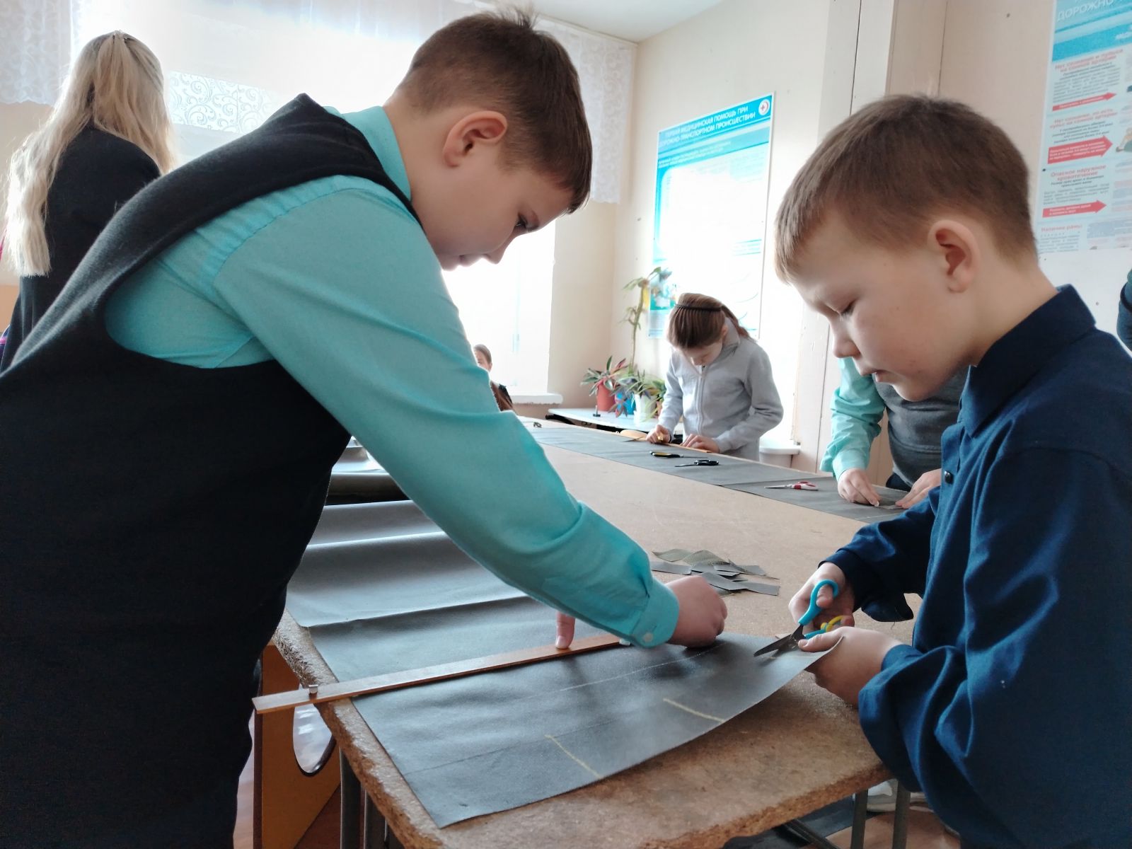 Изготавливать защитное покрывало начали ученики 5 класса.