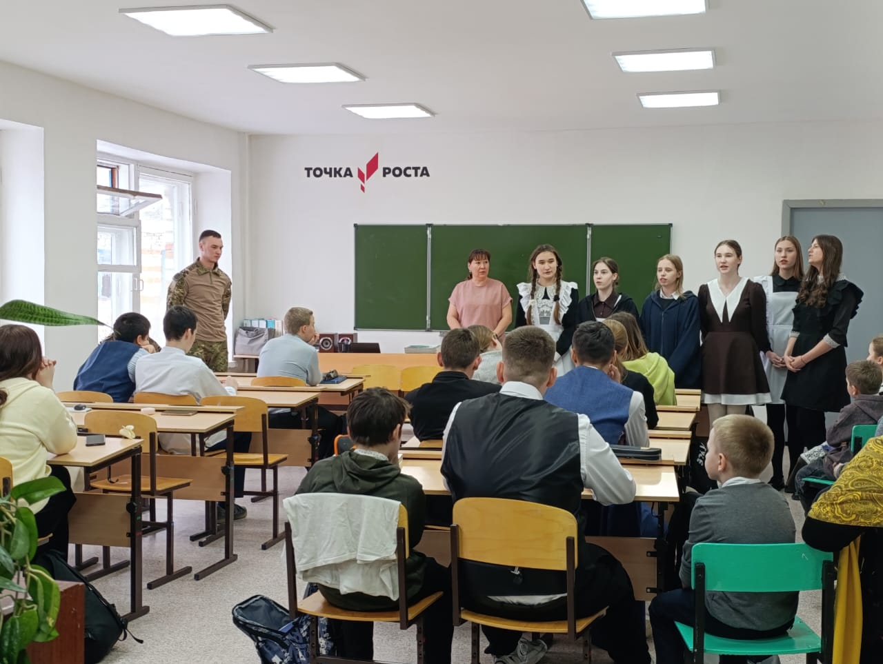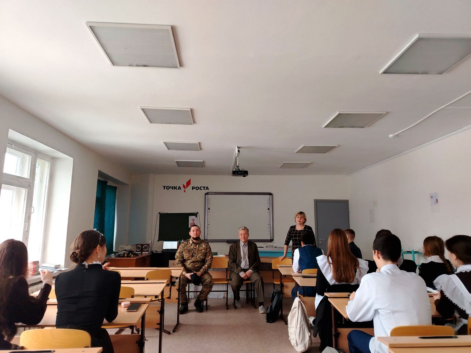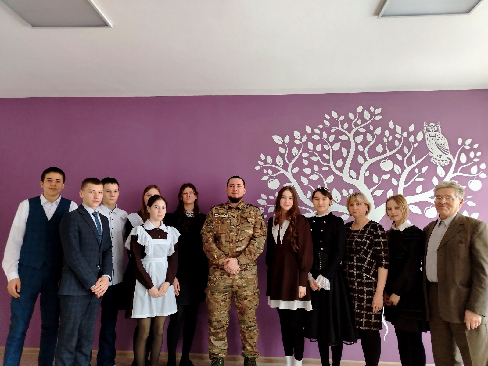 В рамках мероприятий, посвящённых Году защитника Отечества, в нашей школе прошла встреча педагогов и учащихся с участником специальной военной операции.
