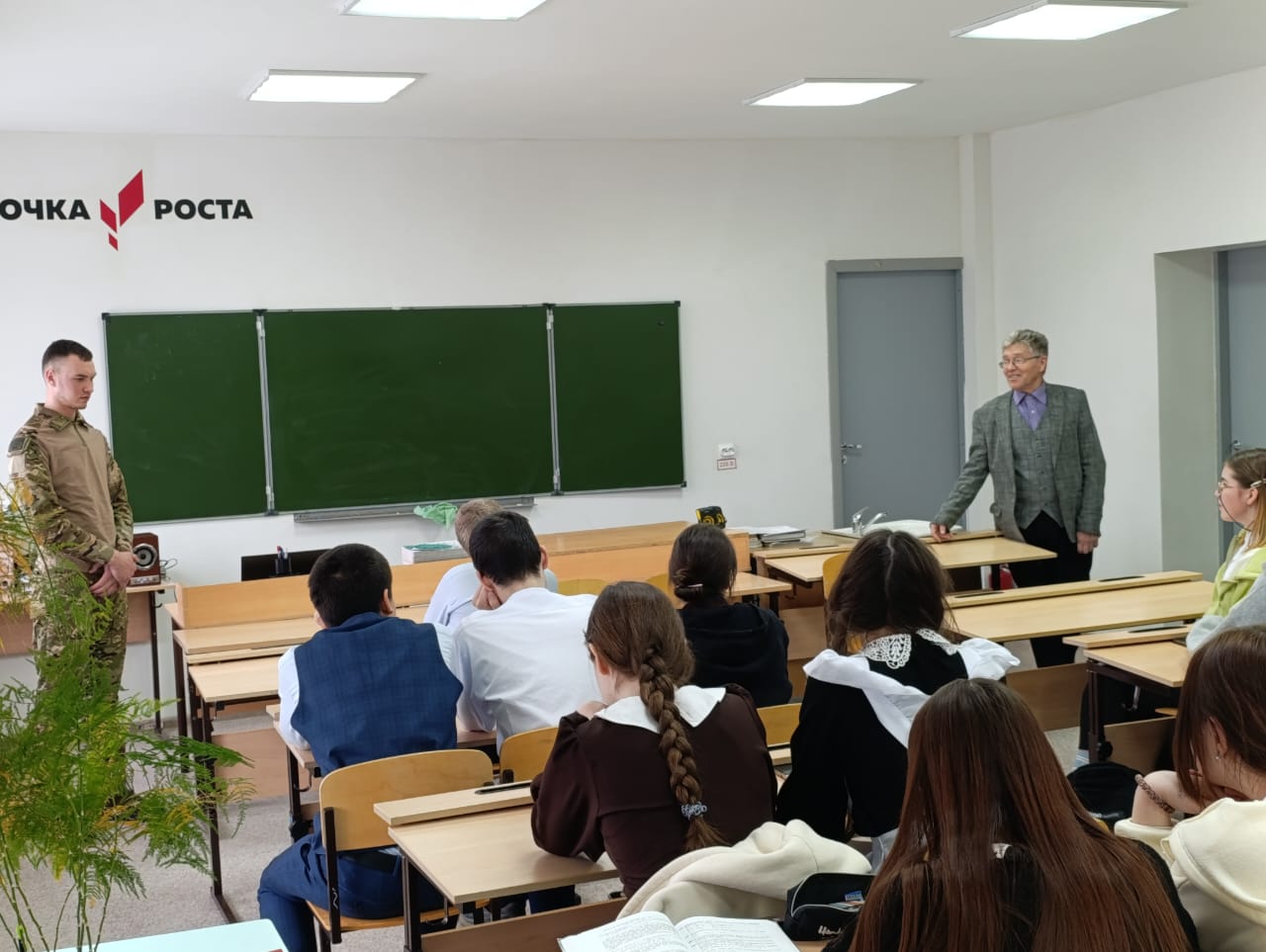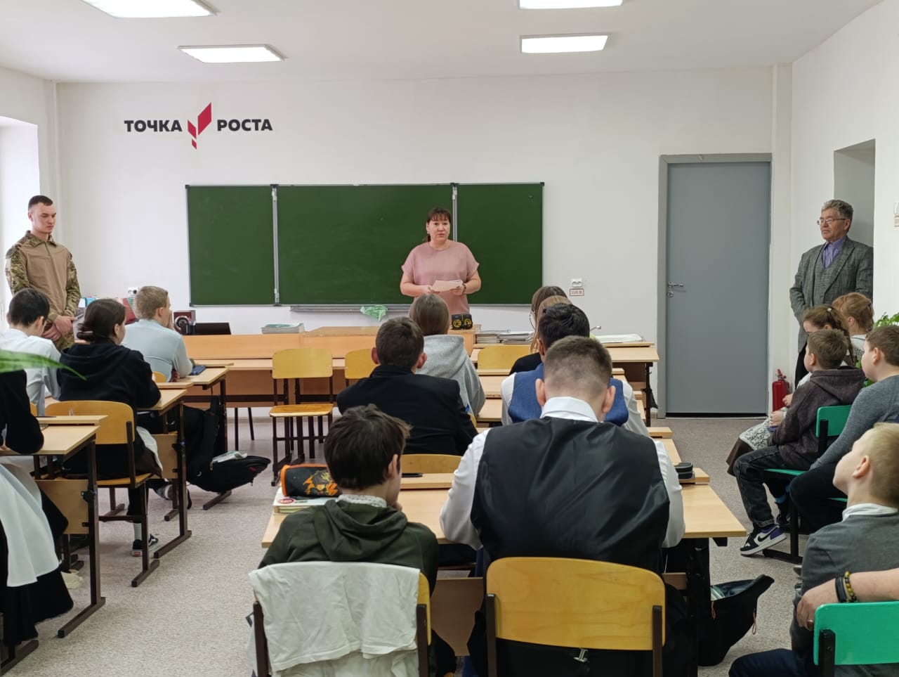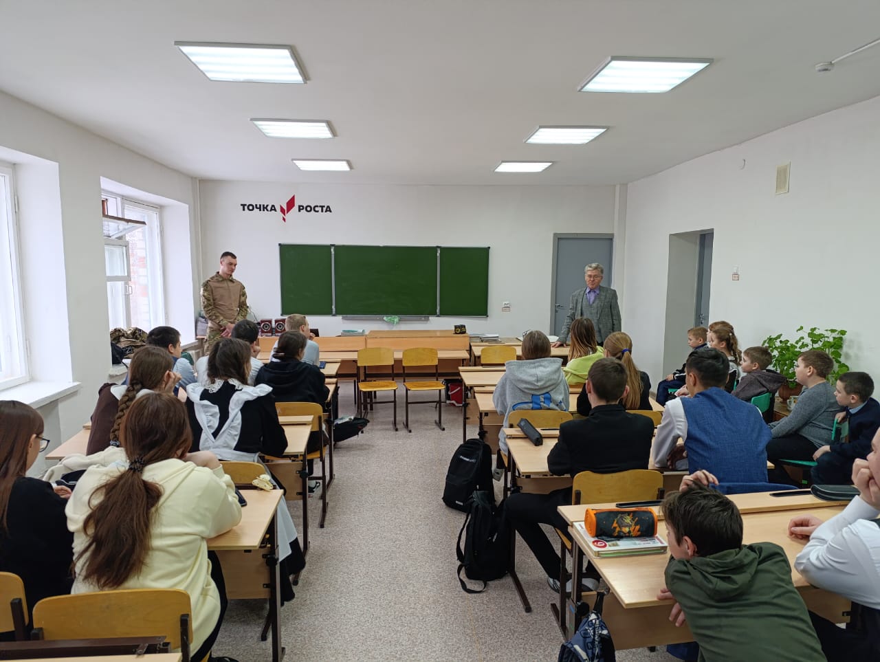В рамках мероприятий, посвящённых Году защитника Отечества, в нашей школе прошла встреча педагогов и учащихся с участником специальной военной операции.