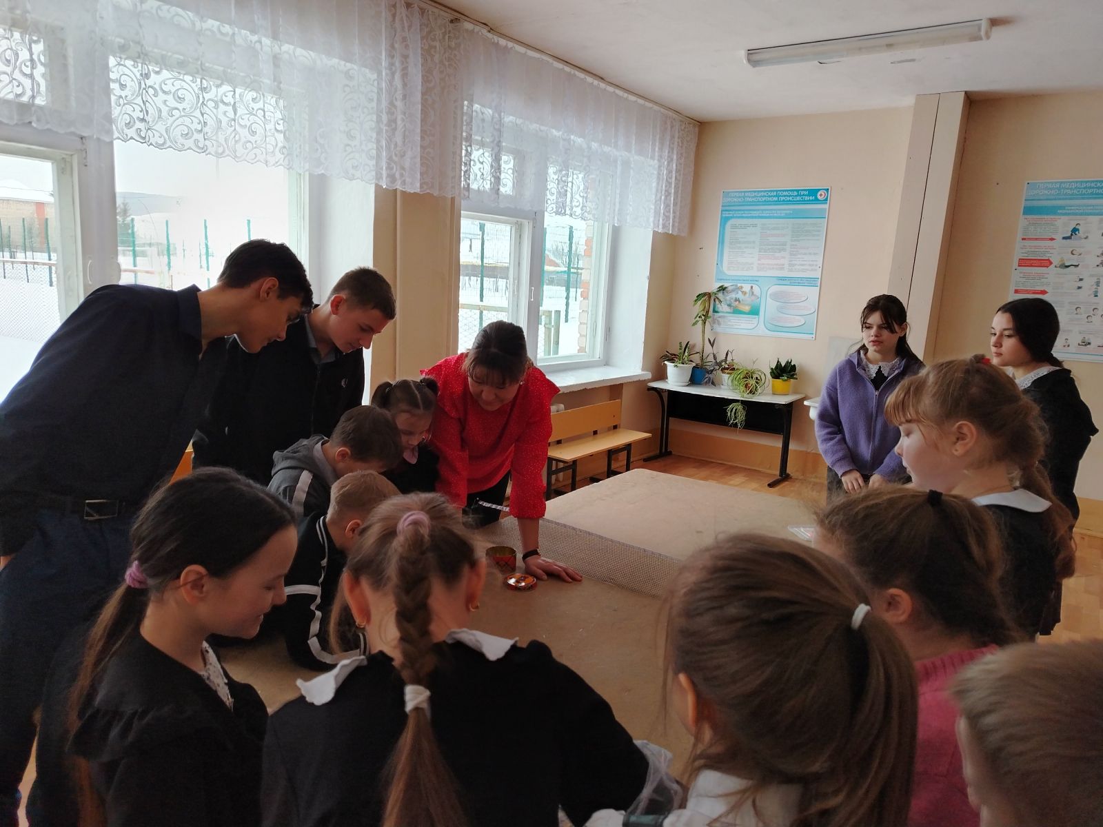 Советником директора по воспитанию совместно с педагогом-организатором для учащихся начальной школы были проведены различные игры и интересные опыты, в которых дети активно приняли участие.