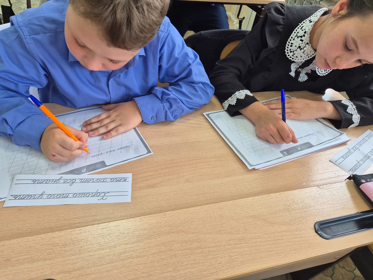 - Каллиграфический марафон. Дети писали необычный диктант – каллиграфический. Его девизом могли бы стать слова: «Писать не только правильно. Но и красиво!»