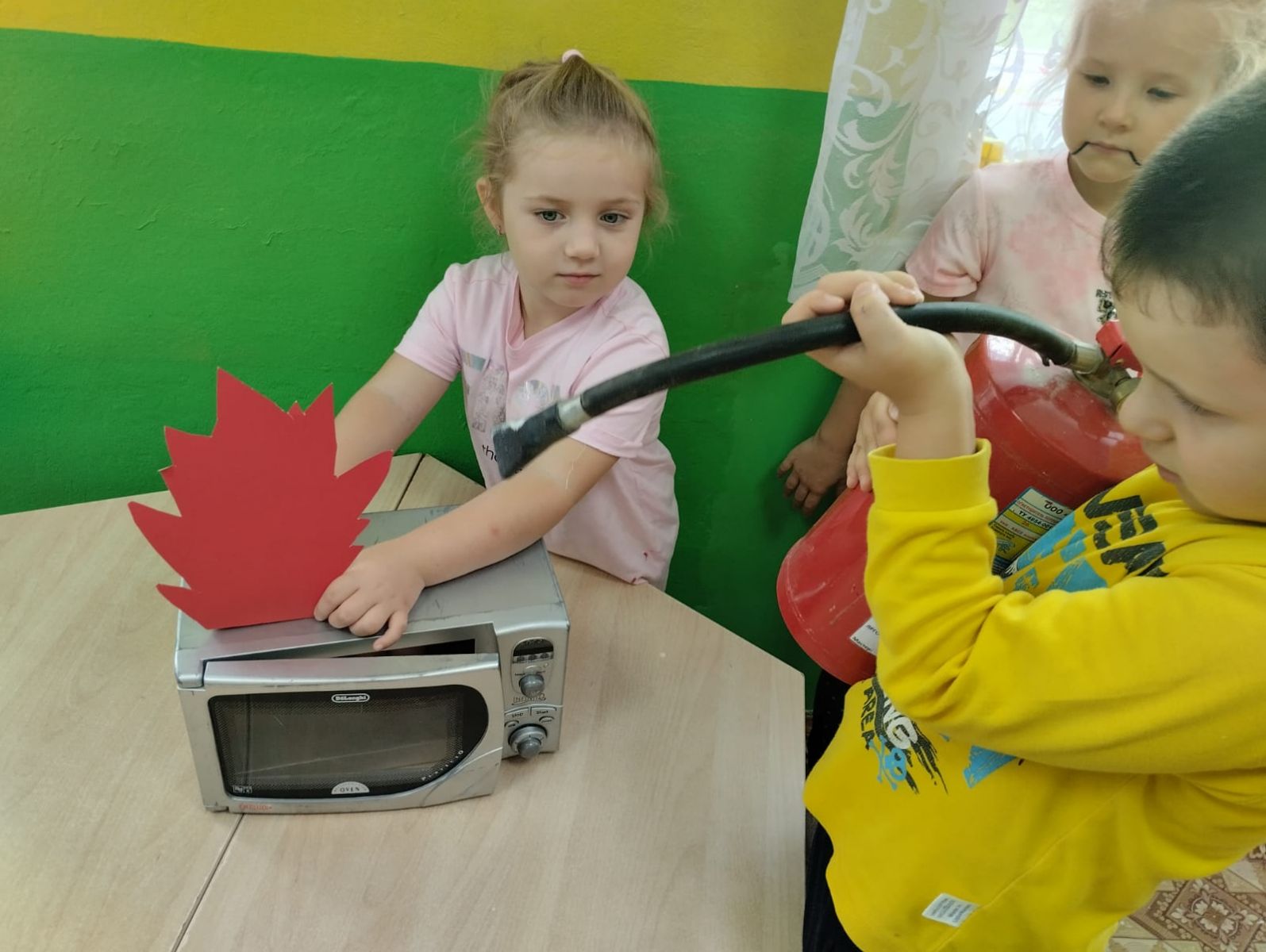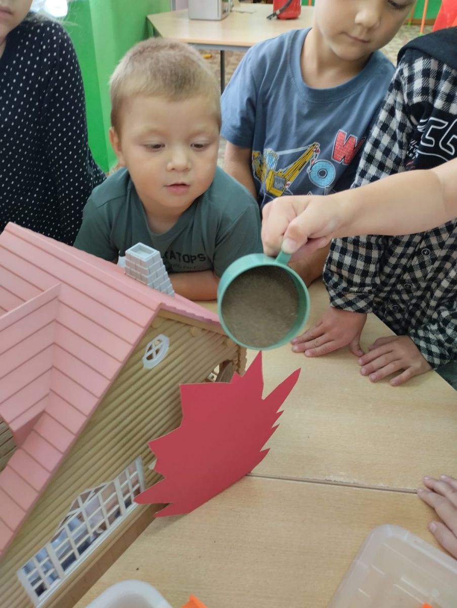 В ходе практического мероприятия ребята познакомились с огнетушителем, с теми предметами, из-за которых, может возникнуть пожар (спички, зажигалки) и какой вред может принести игра с огнем. С ребятами была проведена экскурсию по детскому саду, где познакомились с пожарной сигнализацией, с пожарным щитом и с тем как нужно действовать при пожаре. Именно в дошкольном и школьном возрасте закладываются основные навыки безопасного поведения, вырабатывается бережное отношение к жизни и природе. Поэтому начинать знакомить детей с пожарной безопасностью нужно с самого раннего детства, чтобы они знали, как нужно себя вести правильно и безопасно. Мы уделяем большое внимание именно игровому методу работы, так как данный метод позволяет легче воспринять информацию. Но чтобы уберечь детей от трагедии, необходимы усилия не только детского сада, но и родителей. -