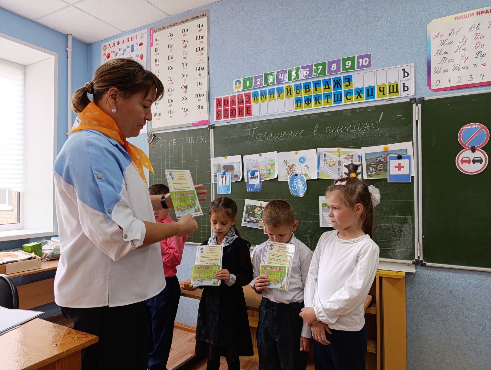 Сегодня в МбОУ "Старокувакакская СОШ" советник директора по воспитанию и педагог-организатор провели для первоклассников праздник «Посвящение в пешеходы». Ребята в игровой форме изучали правила дорожного движения: танцевали, отгадывали загадки о транспорте и собирали пазлы с дорожными знаками. Кульминацией праздника стала торжественная клятва юного пешехода. В качестве доказательства своего нового статуса каждый ученик получил памятное удостоверение, полезную памятку и светоотражающий брелок для безопасности. А сладким финалом стала «золотая медаль» из вкусного шоколада. Мероприятие прошло ярко, весело и запомнится детям надолго.