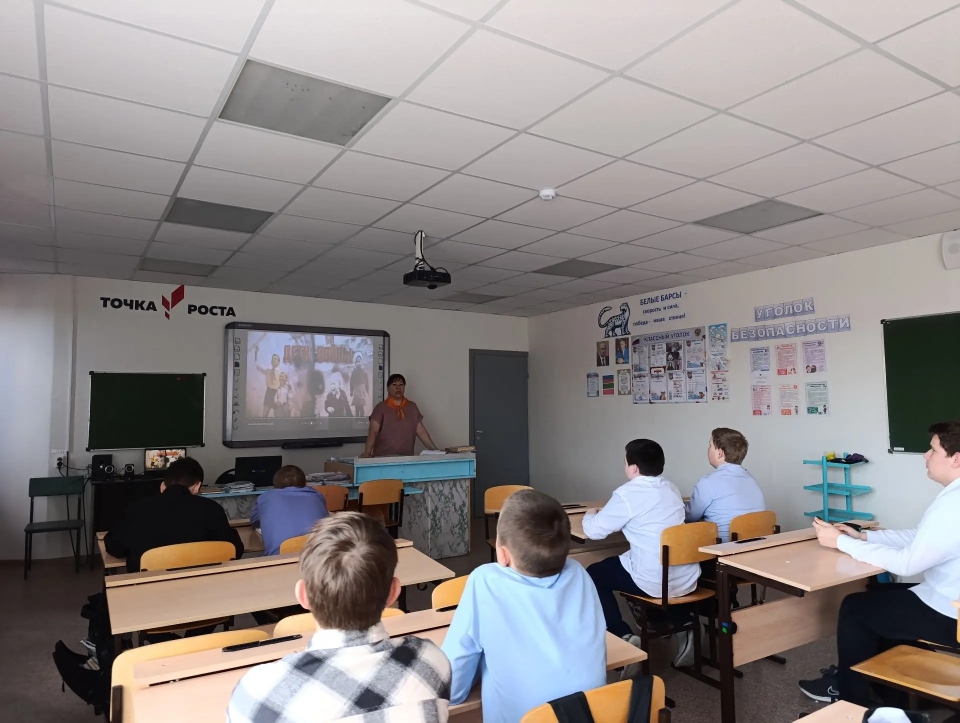 Для учеников 5-го класса советник директора по воспитанию Вахромова Е.Ю. и педагог-организатор Сушкова А.С. провели мероприятие, приуроченное ко Дню памяти жертв геноцида. Ребятам объяснили, почему преступления нацистов — это именно геноцид, а не просто война, что означает это слово и какие 5 форм геноцида использовали оккупанты. Также школьники узнали, почему памятная дата — 19 апреля — связана с конкретным историческим событием.